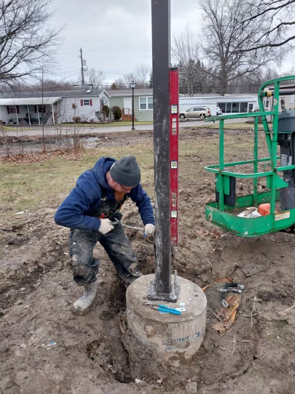 Our expert team of local, licensed electricians worked hard to trench in new electrical, pouring a concrete base and installing a new 20′ LED street light at a large modular home community in Cuyahoga County.